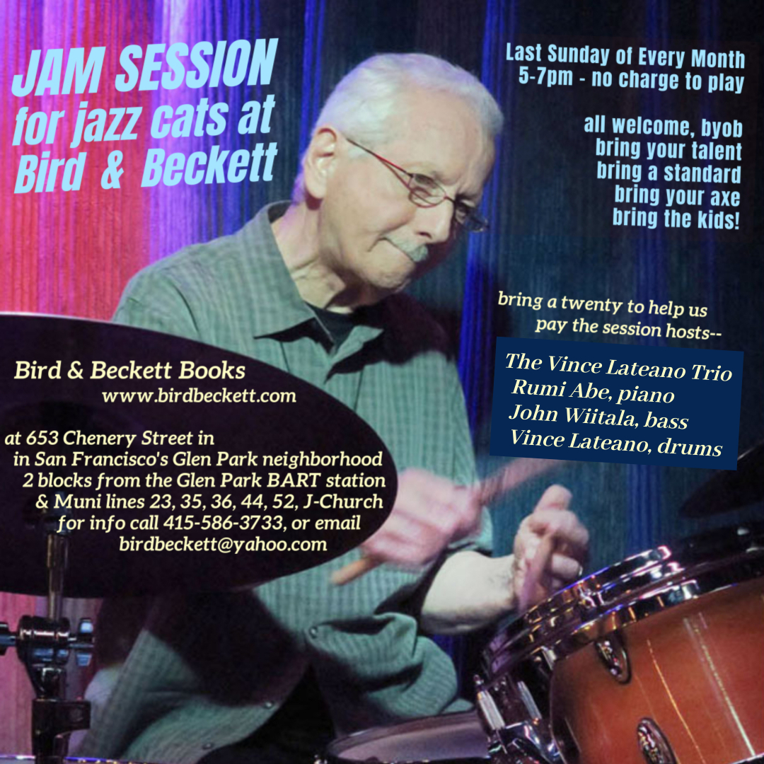 The Bird & Beckett Cultural Legacy Project was created in 2007 "to present, document and archive the creative work of significant living writers and musicians in the San Francisco Bay Area, for a neighborhood audience and future generations," continuing the work we began when the store was established in 1999.