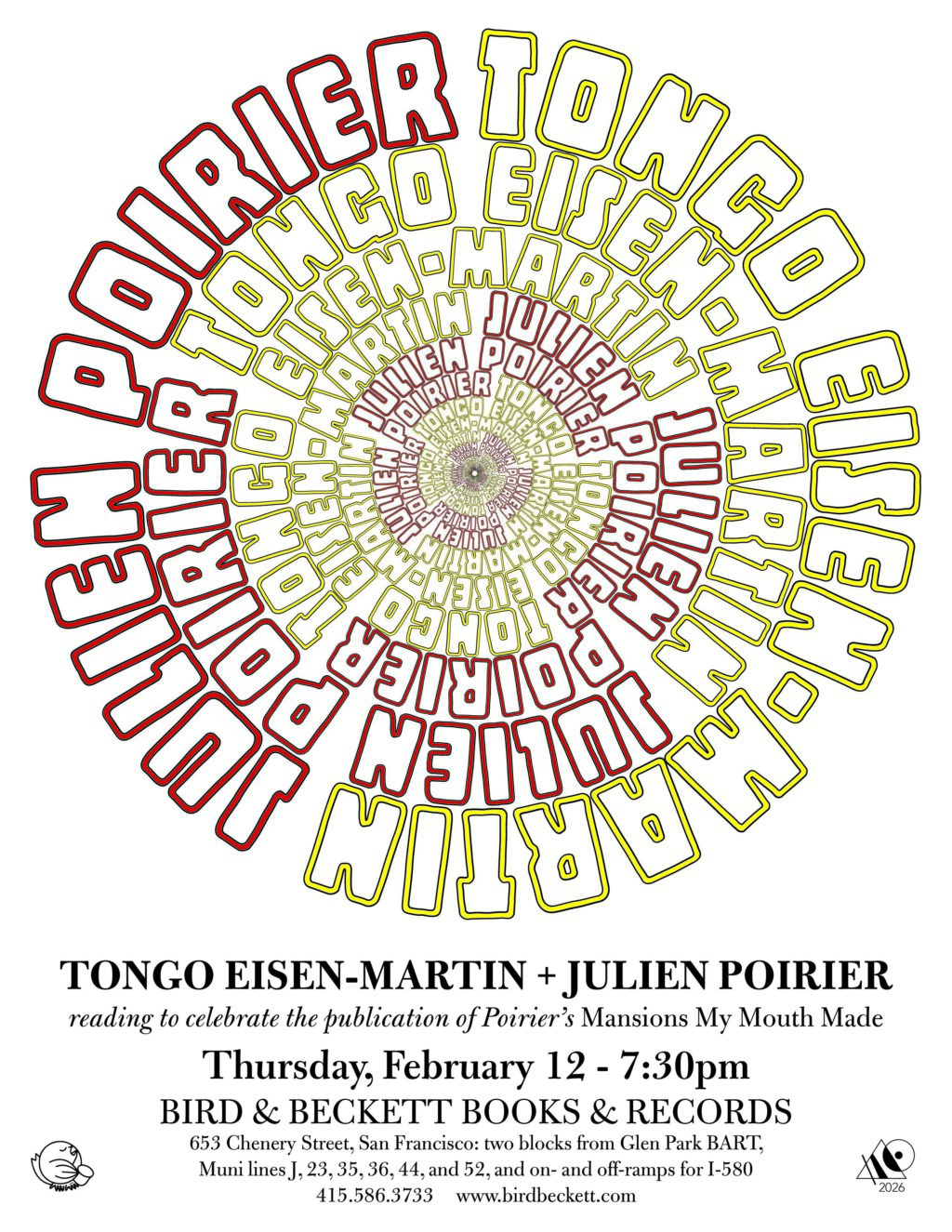 Come to the reading at Bird & Beckett February 12th!