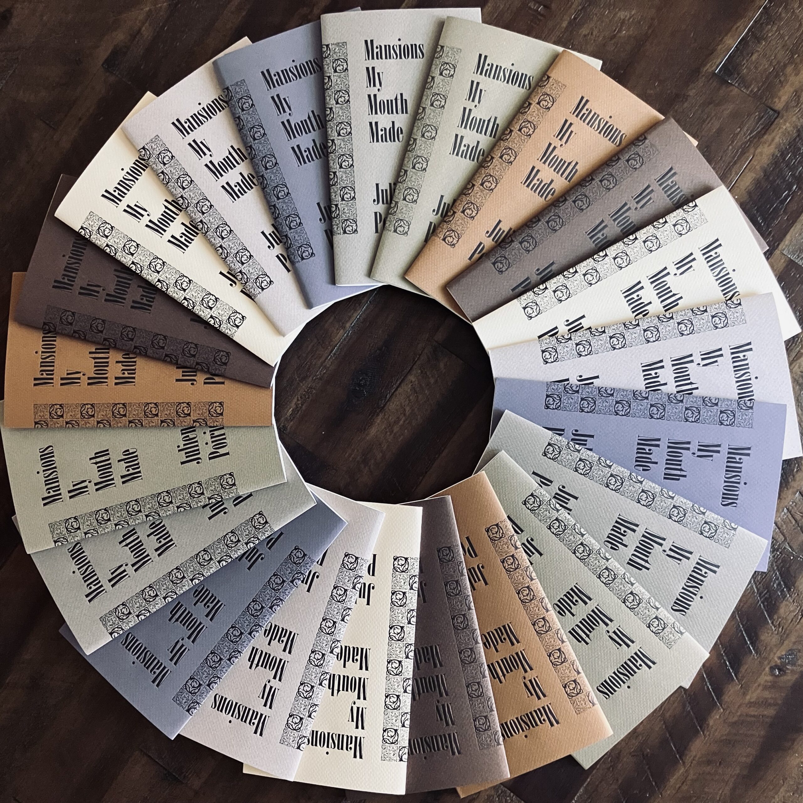 Read MoreCopies of Julien Poirier’s Mansions My Mouth Made (Bird & Beckett, 2025) can be had over the counter at the bookshop and via post through the online store of Impart Ink, where the thing was designed, printed, and assembled: 32 pages, hand-sewn in wrappers printed letterpress from Onyx type on Canson papers in a variety of hues. Yours will be 1 of only 100 copies ever to exist in this world, so don’t wait, or it may be too late… Come to the reading at Bird & Beckett February 12th! Julian will be joined by fellow poet Tongo Eisen-Martin, activist and San Francisco Poet Laureate Emeritus, 2021-2024.