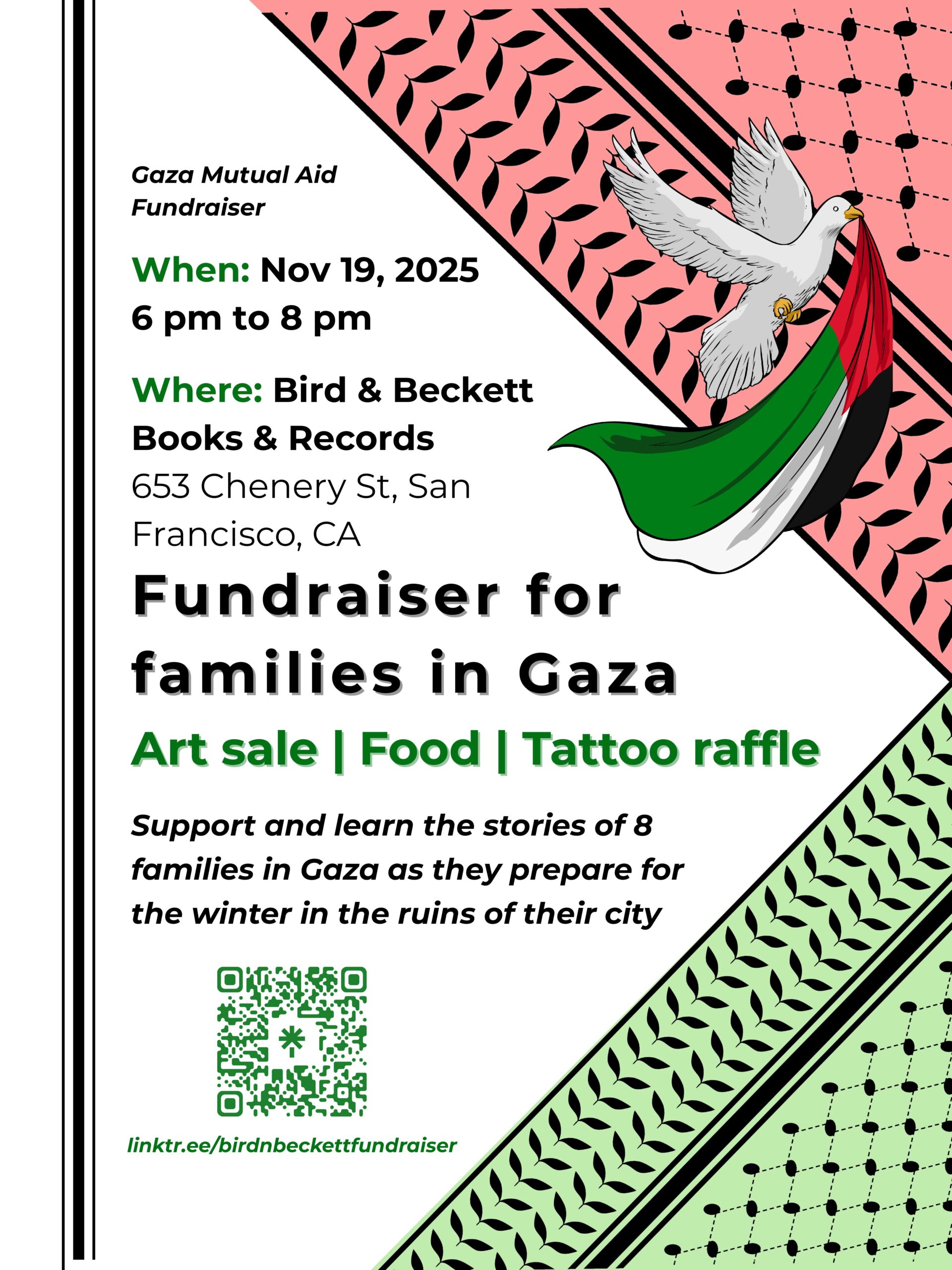 Read MoreHere at Bird & Beckett Books, we’ve always relied on the kindness of neighbors and strangers to make it all work; and we’ve always found that strangers don’t stay strangers long! Your tax-deductible donations to our 501(c)3 nonprofit, the Bird & Beckett Cultural Legacy Project, FEIN 261906810, are the secret sauce. Book sales and cover charges at the shows are crucial, but only go so far to fill the cornucopia of culture that you’ll find here at Bird & Beckett! You can donate through our website using PayPal. Or if you prefer, you can drop off or mail us a check made out to the “Bird & Beckett Cultural Legacy Project” — write “tax-deductible donation” in the memo line. Cash is fine if you prefer. Use your donor-advised fund if you have one. See if your employer offers a matching donation. You can also donate on a recurring, monthly basis…
