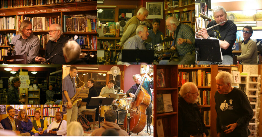 A few months later, Eric Shifrin, a delightful presence on the local jazz scene since he hit town in 1990, and a friend of the Destination Bakery counter gal Deb (who had managed Enrico’s in North Beach in her not-so-distant past), came to check out the store and soon returned to play a one-off Sunday trio date for us. Nowadays, you’ll hear Eric with his “In Crowd” combo at Bird & Beckett on the 2nd Friday of each month.