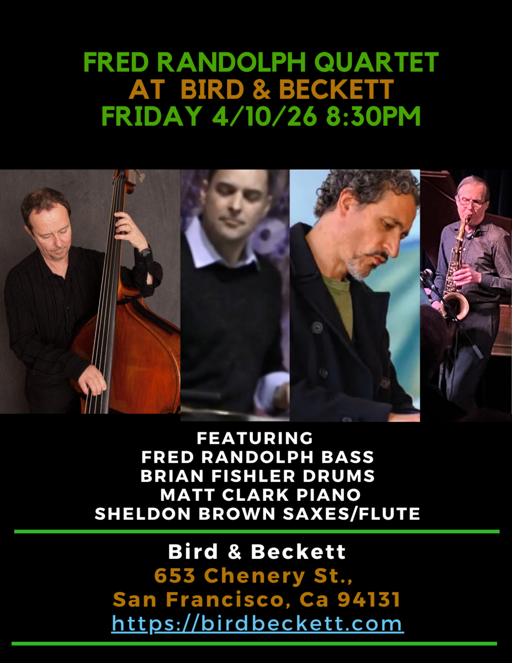 Composer, bandleader & bassist Fred Randolph brings a quartet comprising top talent for two sets of jazz classics and originals.